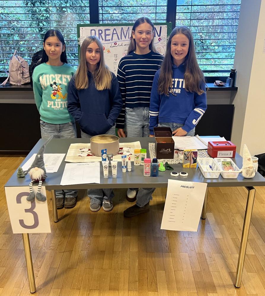 Zunächst wurden im Unterricht die Grundlagen dafür erarbeitet: Firmen mit kreativen Firmennamen wurden gegründet, erste Bestellungen für das eigene Verkaufssortiment beim Großhandel aufgegeben und die zukünftigen Preise für die jeweiligen Verkaufsartikel im eigenen Geschäft festgelegt.