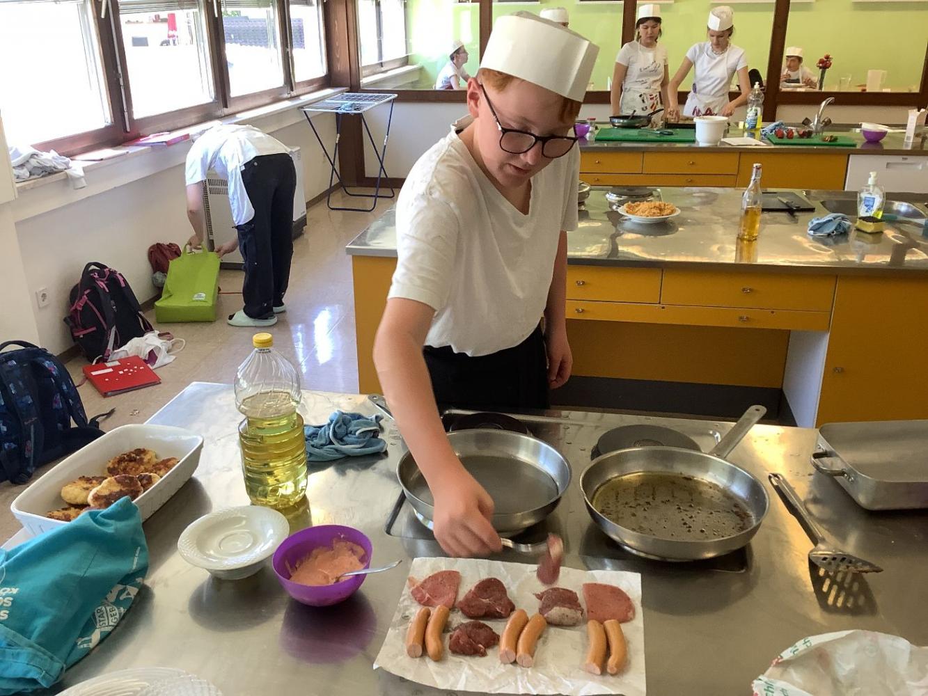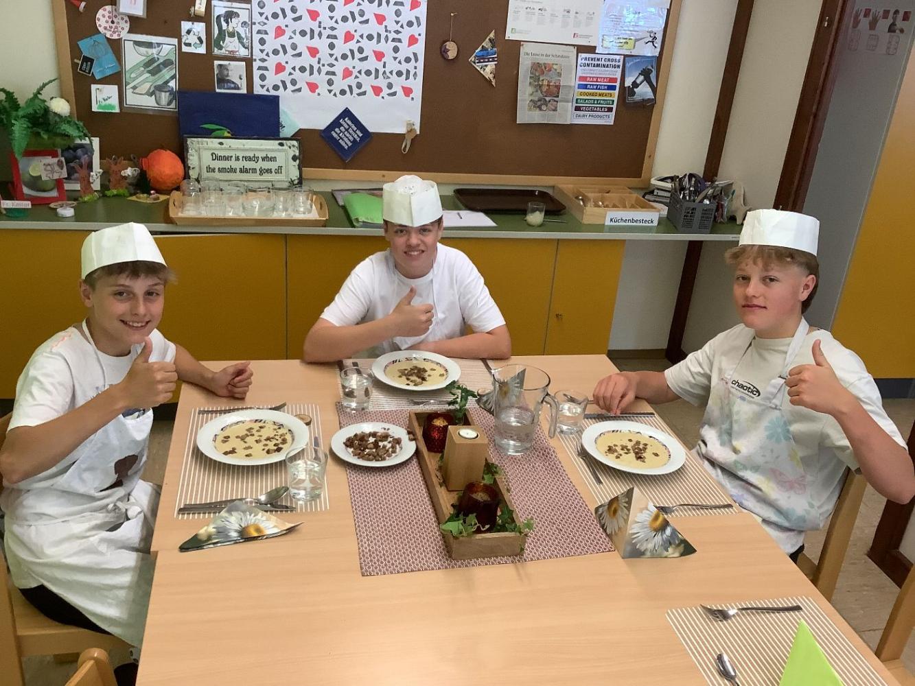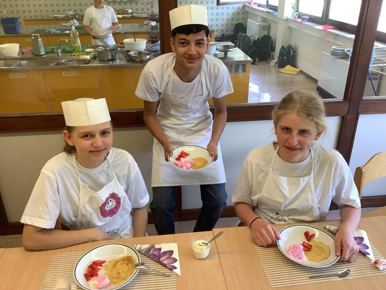 Prüfungskochen 4ab von Diana Keiler 03. Juni 2025 2024/2025 4a 2024/2025 4b 2024/2025 Die SchülerInnen der 4. Klassen stellen ein 3-Gänge-Menü zusammen und kochen ihre Gerichte am Tag des Prüfungskochens.