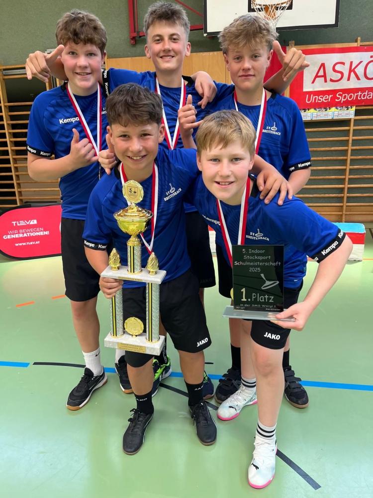 Am Mittwoch, 13.05.2025, nahm eine Mannschaft unserer Schule an der Landesmeisterschaft Stocksport Schüler in Wörgl teil. Das Team bestehend aus Alexander Gruber, Noah Moser, Fabio Mauracher, Sebastian Feichtner und Valentin Auer mit Betreuer Otto Hirner gewann souverän alle Spiele und konnte den Landesmeistertitel nach Breitenbach holen. Außerdem holten sie sich beim Blattlschießen den 2. Gesamtrang. Am 11.06.2025 findet die Bundesmeisterschaft in Breitenbach statt, bei der uns die Jungs wieder würdig vertreten werden.